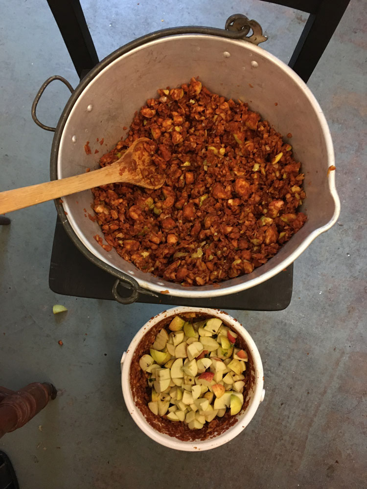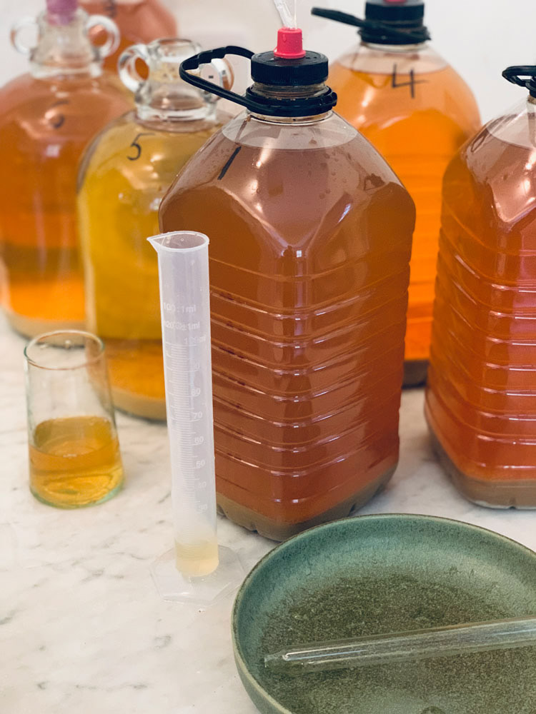 There are also images of building a small, practical setup for pressing and fermenting at home, bottling cider and vinegar, and sharing it with friends and neighbours. Alongside this are notes and records that track the process over time: pH values, specific gravity, apple mixes, and small adjustments from year to year. Gradually, connections between practices begin to appear, including experiments with using woodblock prints for bottle labels and thinking about how craft, fermentation, and orchard work inform one another.