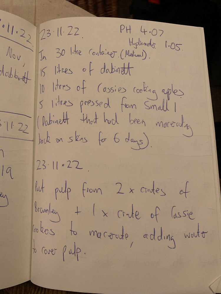 It begins with gathering fruit from old, unknown garden trees around Forres, and with an increasing interest in orchard history and practice. There are images from our first attempts at apple pressing, which were far more challenging than expected, and from the early days of watching demijohns begin to ferment. These moments marked the start of learning to work with processes that unfold in their own time, and to become comfortable with waiting, uncertainty, and change.
